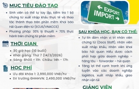 Phương pháp đào tạo khác biệt đến từ đội ngũ giảng viên, chuyên gia hàng đầu trong lĩnh vực vận tải biển và logistics. Đào tạo trực quan, thực chiến giúp người học có tư duy thực tế, kĩ năng làm việc hiệu quả. Ví dụ: Nói đến Booking...